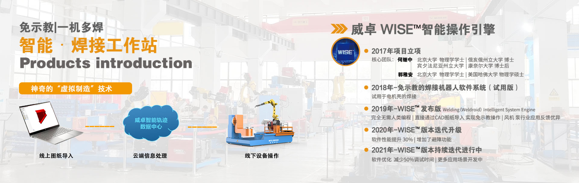 立即咨詢 現(xiàn)在聯(lián)系我們:0510-85384033無錫威卓智能機(jī)器人有限公司成立于2017年,是無錫市政府引進(jìn)的科技領(lǐng)軍型高新技術(shù)企業(yè),公司研發(fā)團(tuán)隊(duì)80余人,我們堅(jiān)持自主創(chuàng)新,利用自主開發(fā)的虛擬制造技術(shù)對傳統(tǒng)焊接行業(yè)進(jìn)行升級改造。 公司主推的工業(yè)風(fēng)機(jī)系列-智能焊接工作站產(chǎn)品,具有免示教、實(shí)時跟蹤、簡易工裝、傻瓜式操作等優(yōu)點(diǎn),真正幫助企業(yè)解決了招焊工難,用工成本高,焊接質(zhì)量不穩(wěn)定等問題。